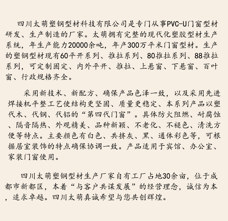Copyright©Sichuan Taimeng Plastic Steel Profile Technology Co., Ltd