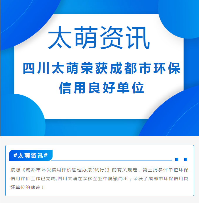【太萌资讯】四川太萌荣获成都市环保信用良好单位