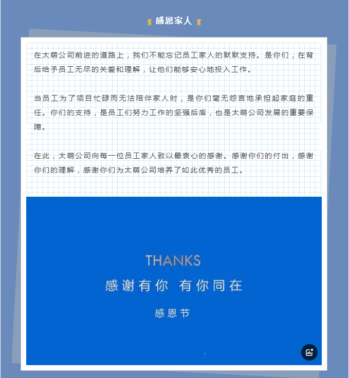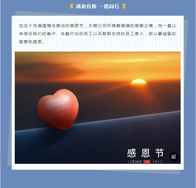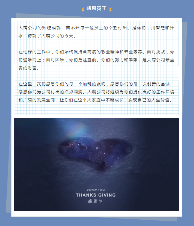 心怀感恩,砥砺前行丨太萌公司在感恩节的深情告白