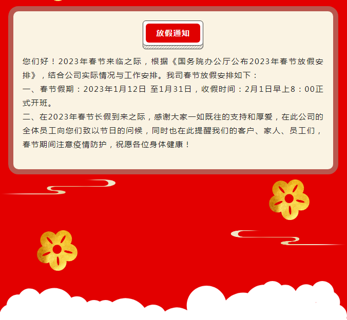 四川太萌 2023春节放假通知