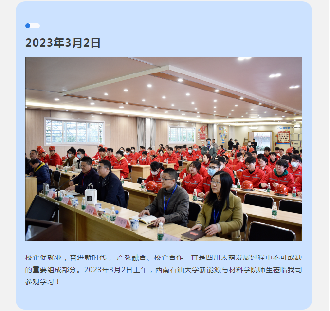 【太萌资讯】热烈欢迎西南石油大学新能源与材料学院师生莅临我司参观指导!
