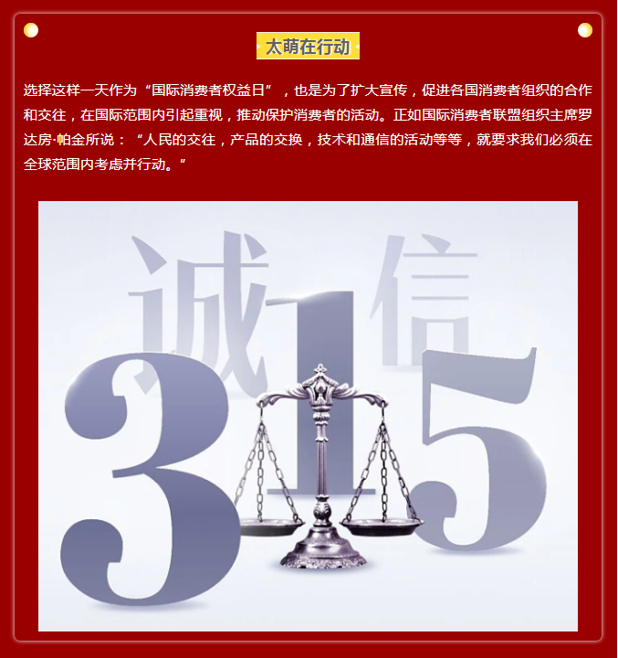 诚信何必315,品质放心365,太萌在行动!
